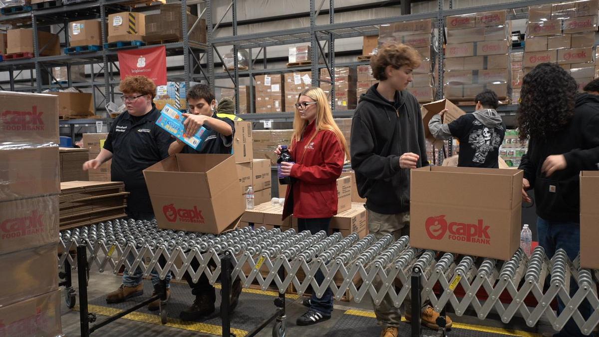 CAPK is a long-standing local nonprofit dedicated to increasing access to healthy food and essential services for residents in need. The organization operates one of Kern County’s largest food distribution networks, with more than 200 access points serving communities throughout the region. Students spent the day at the Wonderful Community Food Center in downtown Bakersfield, where they helped sort, pack, and prepare food items for distribution to families in need.